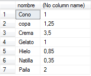 select top 1 nombre, precio -- el top 1 devuelve solo el primer registro de la consulta